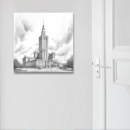 Warschau Kulturpalast - Wandbild in der Stilrichtung einer Zeichnung
